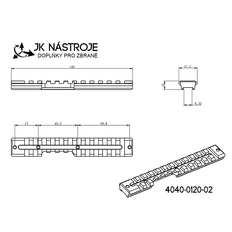 Picatinny-siin (sihiku alus) kinnitusrõngaste paigaldamiseks Picatinny-liidesega.