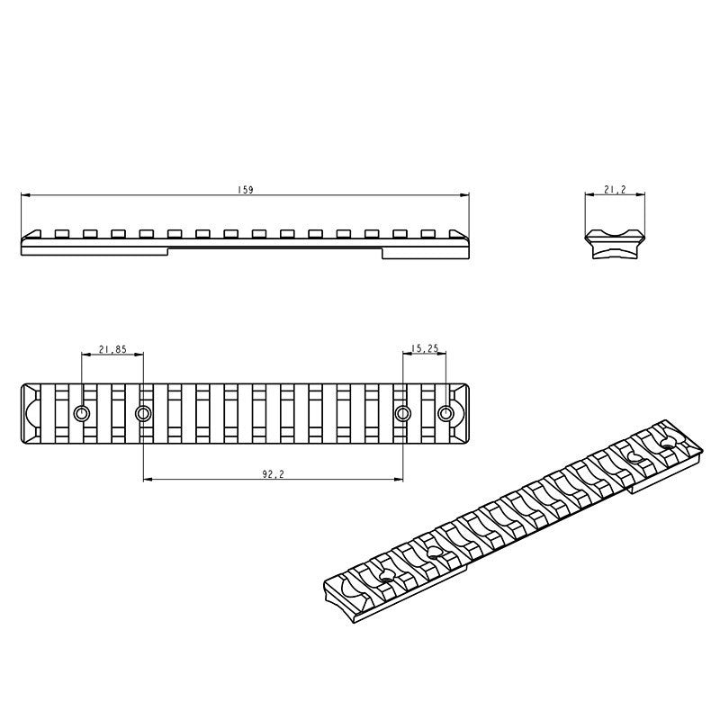 Picatinny-siin (sihiku alus) kinnitusrõngaste paigaldamiseks Picatinny-liidesega.