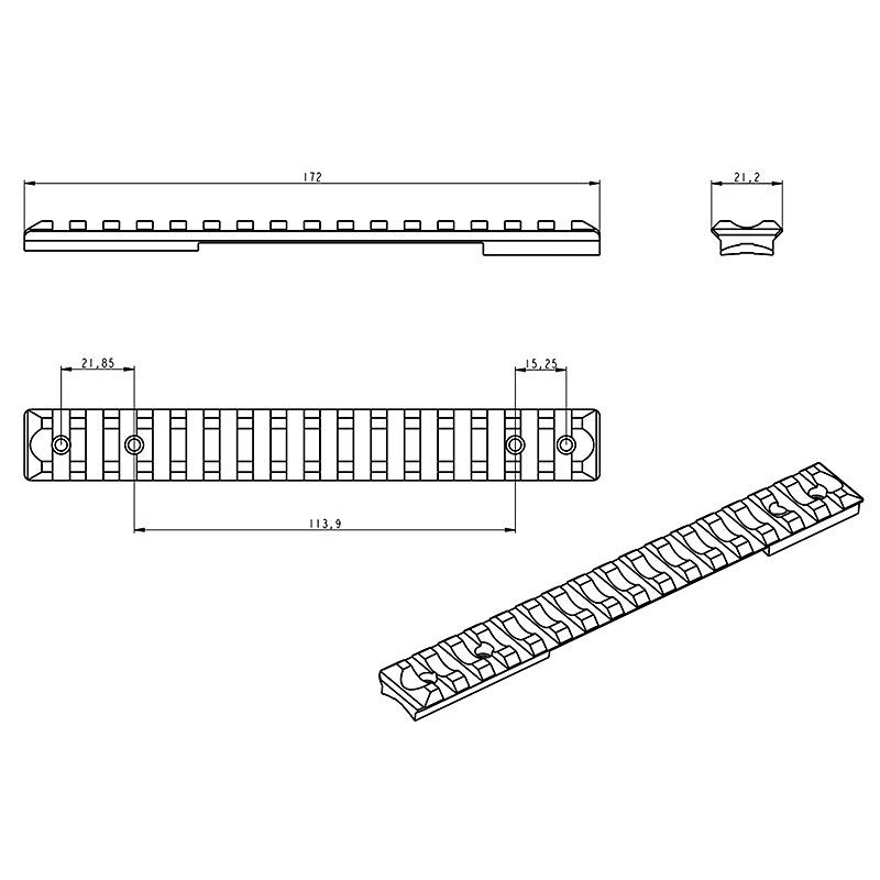Picatinny-siin (sihiku alus) kinnitusrõngaste paigaldamiseks Picatinny-liidesega.