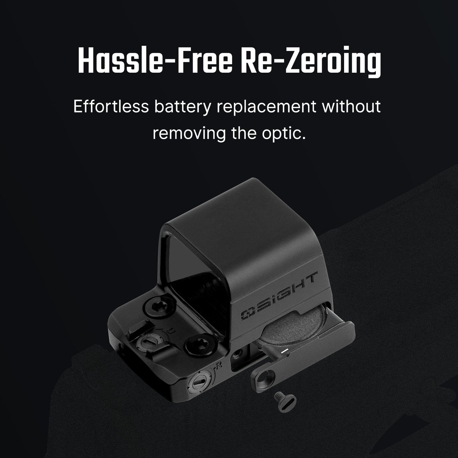 Küljelt laaditav aku: CR1620 aku vahetamine on lihtne, ilma optikat eemaldamata, mis välistab vajaduse nullpunkti uuesti seadistada.