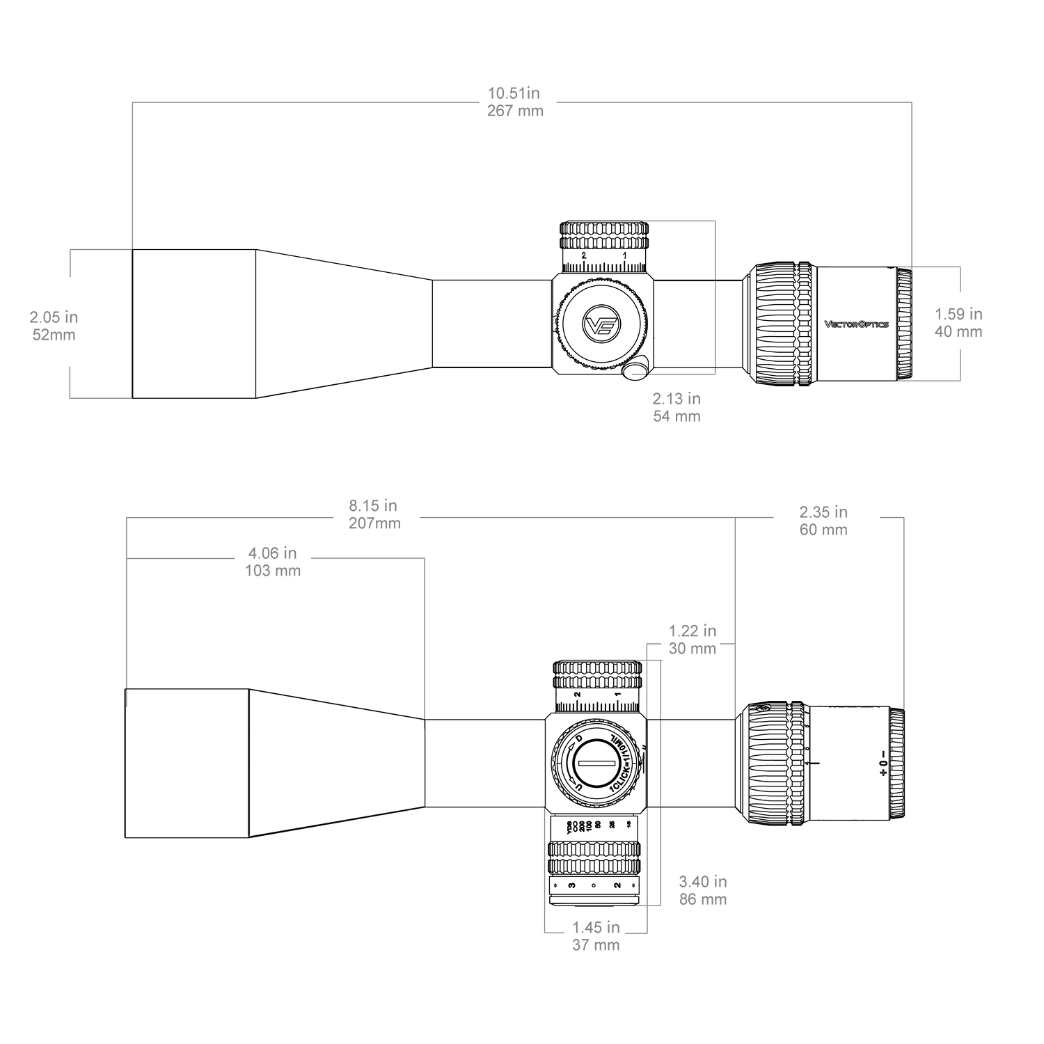 • 30 mm ühe toruga, ülilühike 268 mm (10,5 tolli), 1/10 MIL 1 cm reguleeritav tornilukustussüsteemiga